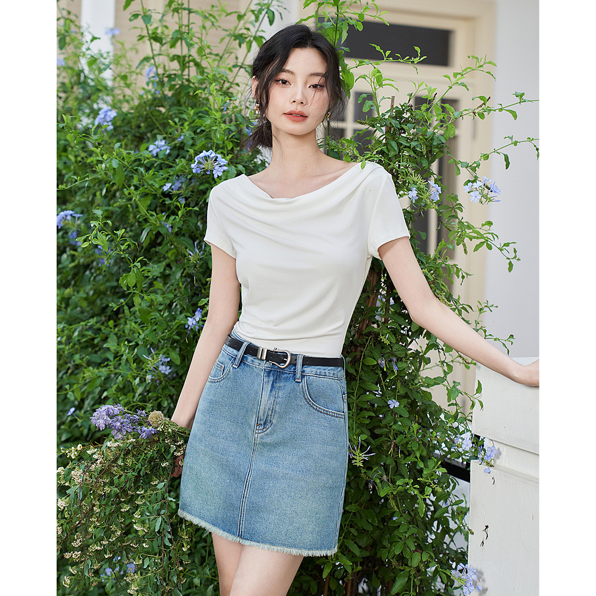 The design of the skirt is fashionable but not exaggerated, showing the girl's restrained taste.